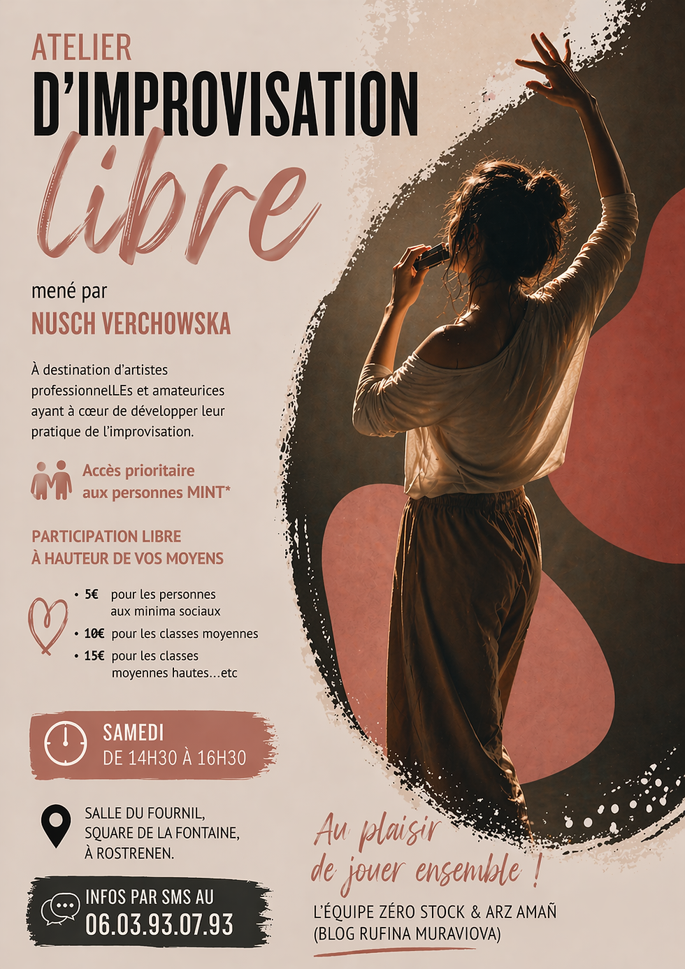 Ateliers d’improvisation libre a Rostrenen mené par Nusch Werchowska à destination d’artistes professionnelLEs et amateur-ices ayant à cœur de développer leur pratique de l’improvisation